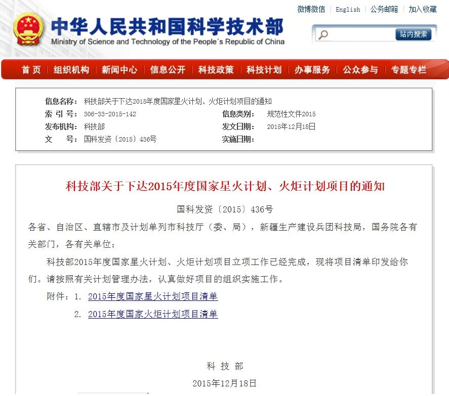 12月18日,根據(jù)國(guó)家科技部“關(guān)于下達(dá)2015年度國(guó)家星火計(jì)劃、火炬計(jì)劃項(xiàng)目的通知”。本公司《22萬(wàn)噸廢棄物資源化再利用產(chǎn)業(yè)化示范》項(xiàng)目,獲得國(guó)家科技部火炬計(jì)劃項(xiàng)目(產(chǎn)業(yè)化示范項(xiàng)目)立項(xiàng),項(xiàng)目編號(hào)為2015GH061389。
