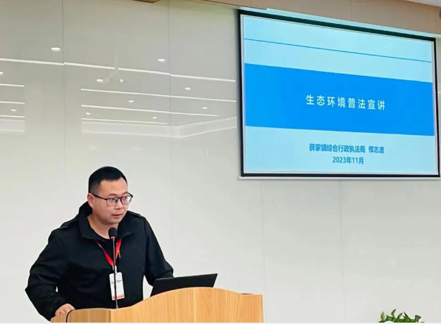 薛家鎮綜合行政執法局惲志波重點講解了生態環境法律法規、常見環境違法行為及后果,并結合典型案例闡述了環境管理要點。