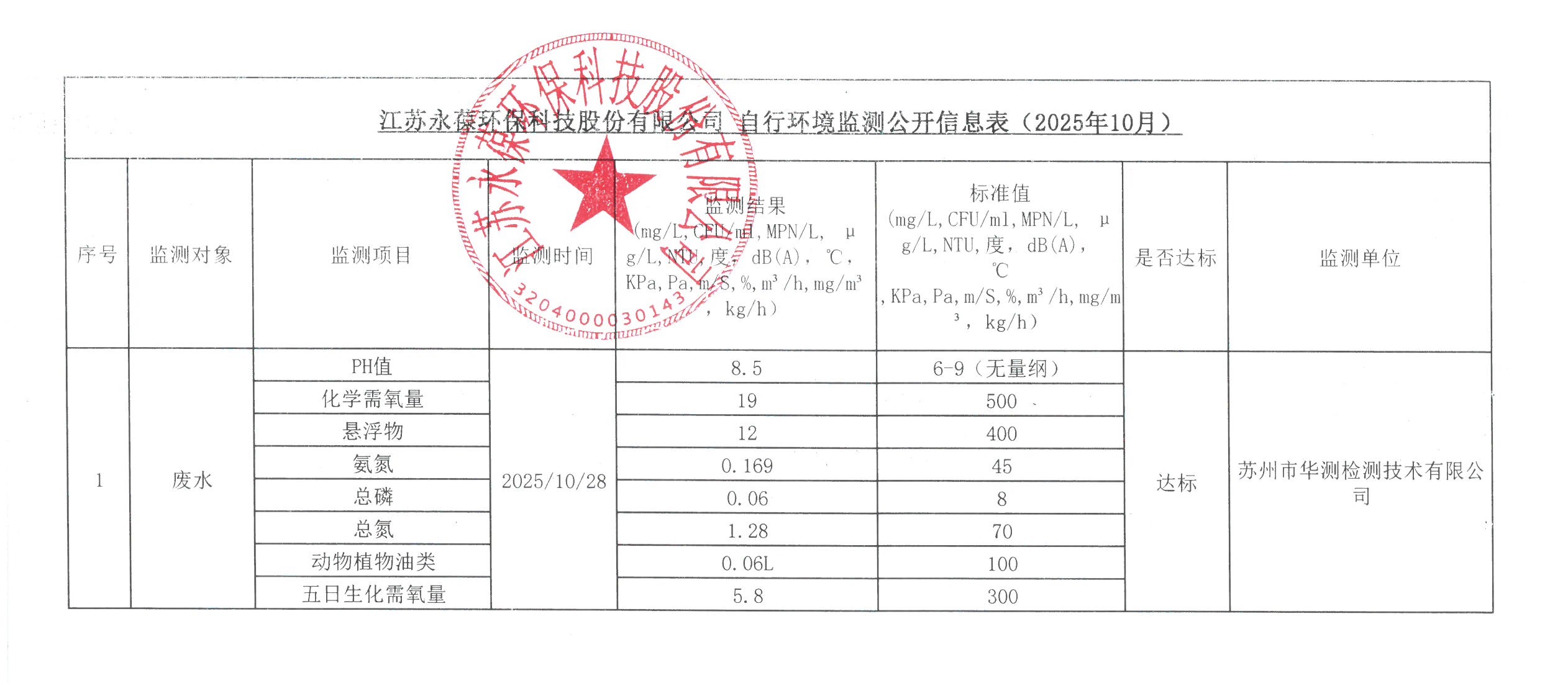 江蘇永葆環保自行環境監測公開信息